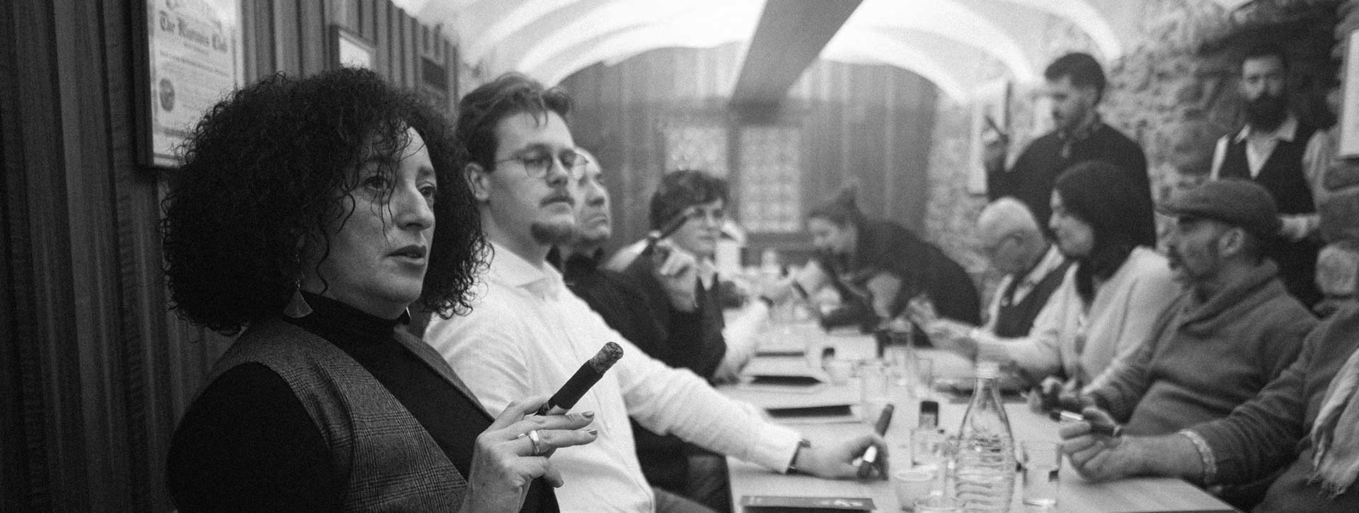 Nimm an unseren Blue Smoke Spirit-Events teil.. Zufällige Begegnungen, in einem Café oder zu Hause: ausgearbeitete Ereignisse, verrückte Paarungen, aber auch megaeinfache Dinge. Wir können uns in einem Schloss mit den Füßen im Wasser treffen oder auf einer Wiese um ein Feuer herum. Wir wollen uns einfach nur treffen, eine gute Zigarre rauchen und gute Dinge essen, SAVOUREUSES.