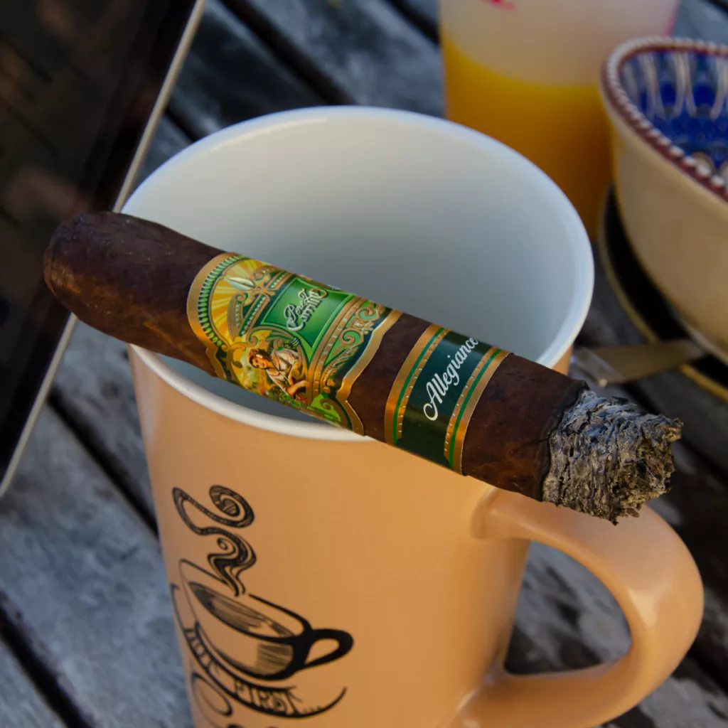L’Allegiance est composé d’une cape Sumatra de 8e fermentation provenant de la région de Quevedo, en Équateur, associée à une sous-cape et tripe nicaraguayennes.