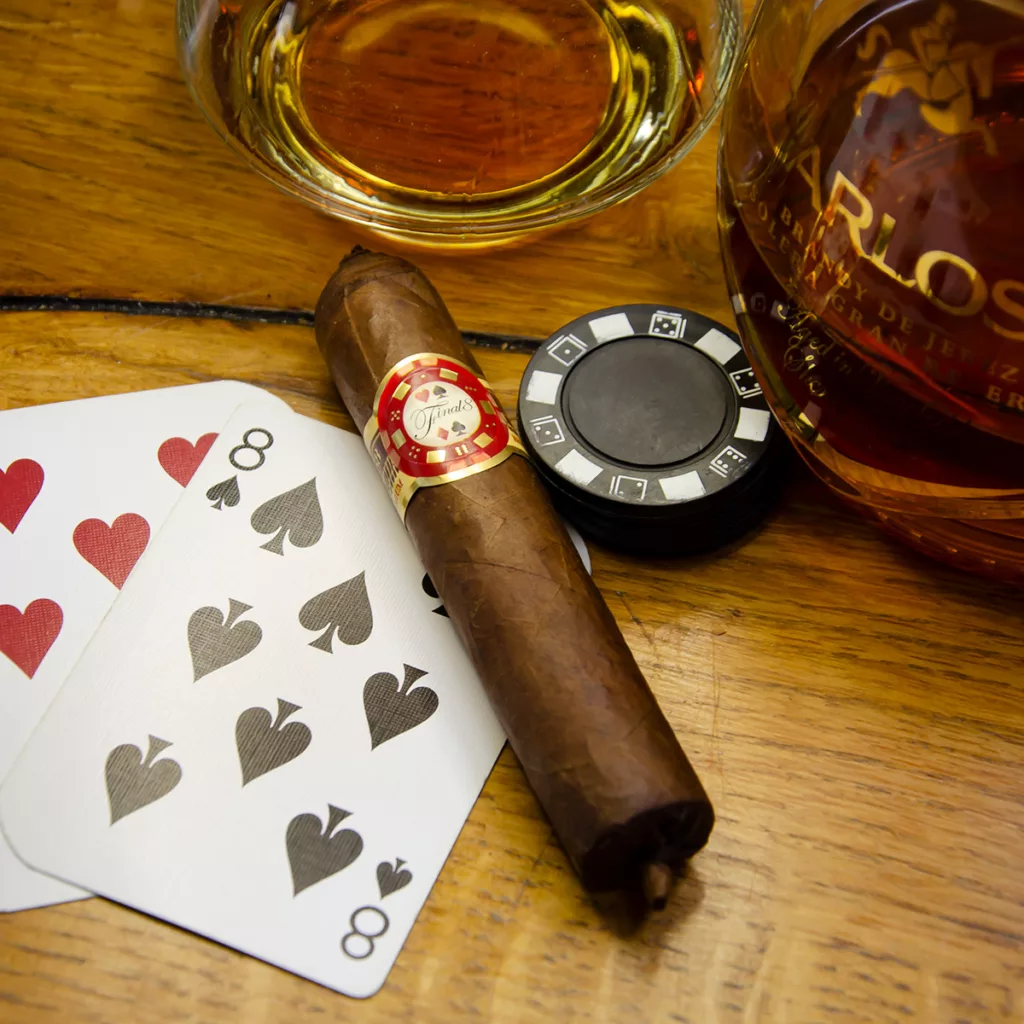 Voici un cigare un brin joueur. Avec son jeton de casino flanqué de deux ailes, ce robusto semble le compagnon idéal de vos soirées poker.