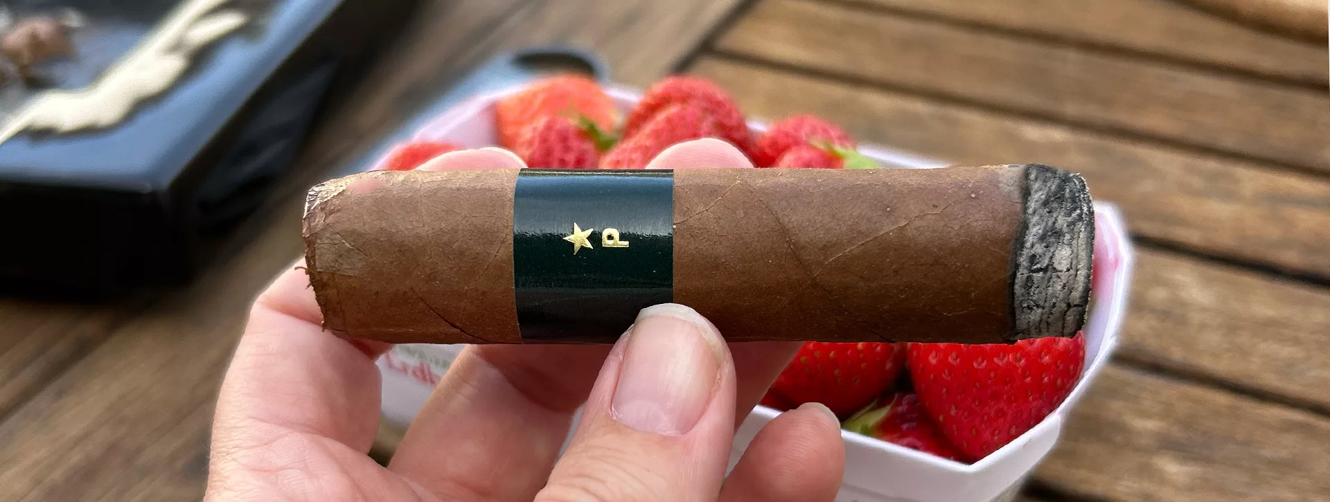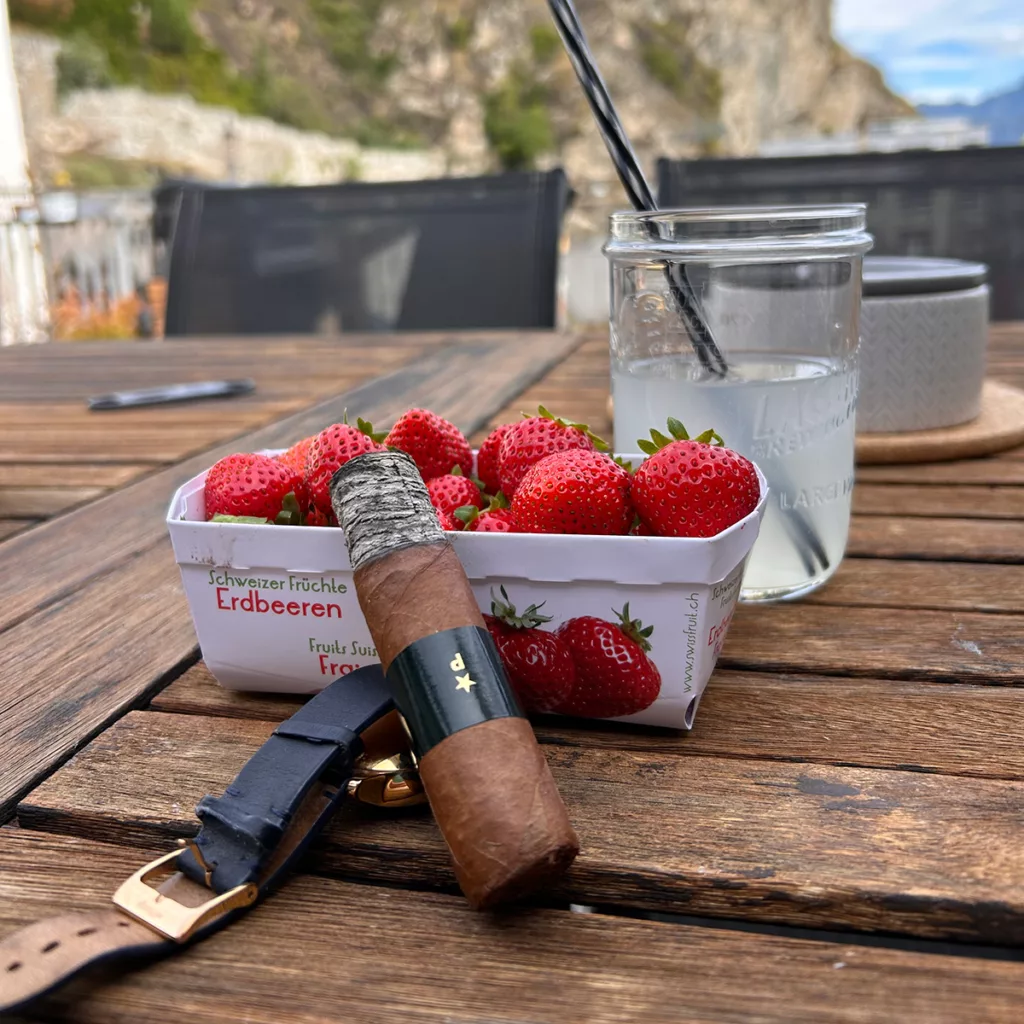 Une touche de sucre pour équilibrer encore la puissance de ce cigare: fraises fraîches, sirop de gingembre.