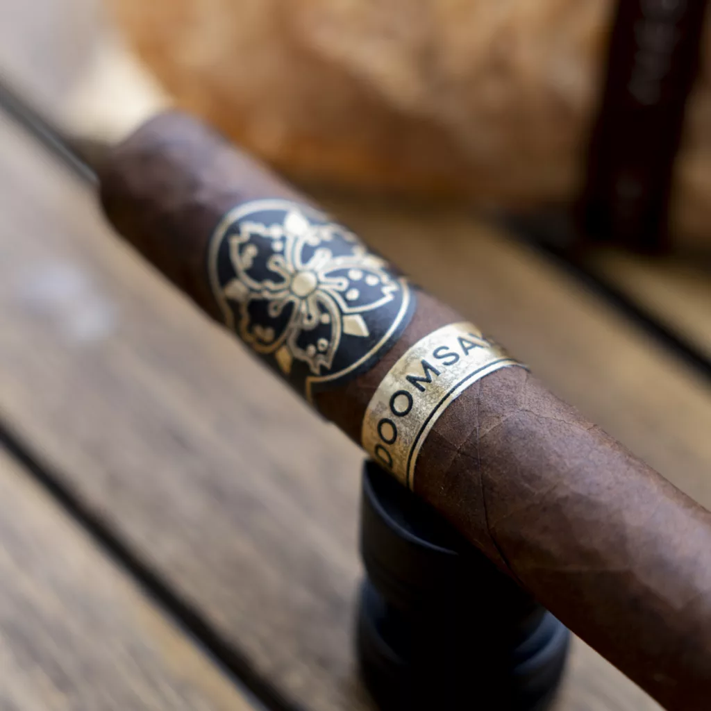 Du cuir, de la terre, et de l’animal. Voilà les premières notes déjà puissantes que nous délivre ce cigare avant même de l’allumer. Sa cape – ceinte d’une double bague or et noir – parfaitement tendue et ferme en dit déjà long sur son caractère.